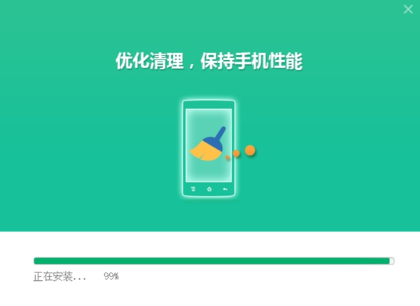 3、等待安装进度完成,启动软件后通过USB或无线方式连接手机即可使用。