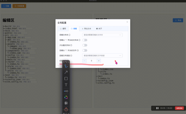 修改注释后自动刷新预览窗口,无需手动保存,导出时注释与目录树合并为纯文本。