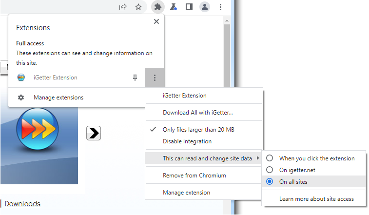 1、Edge用户需要使用“与nternet 浏览器集成”工具菜单命令,然后单击“Microsoft Edge”按钮。然后按照打开的网页上的说明安装 iGetter 扩展。