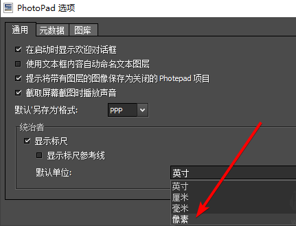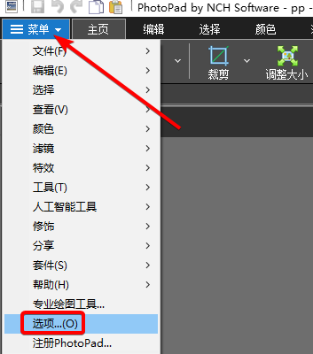 1、首先我们打开PhotoPad,接着我们只需要点击左上角的菜单,选择对应的选项。