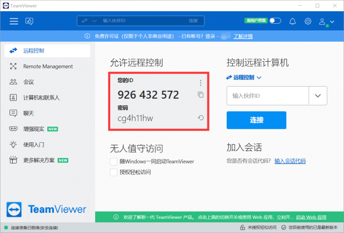 1、在本站下载并安装Teamviewer免费版,登录账号,记住ID和密码。