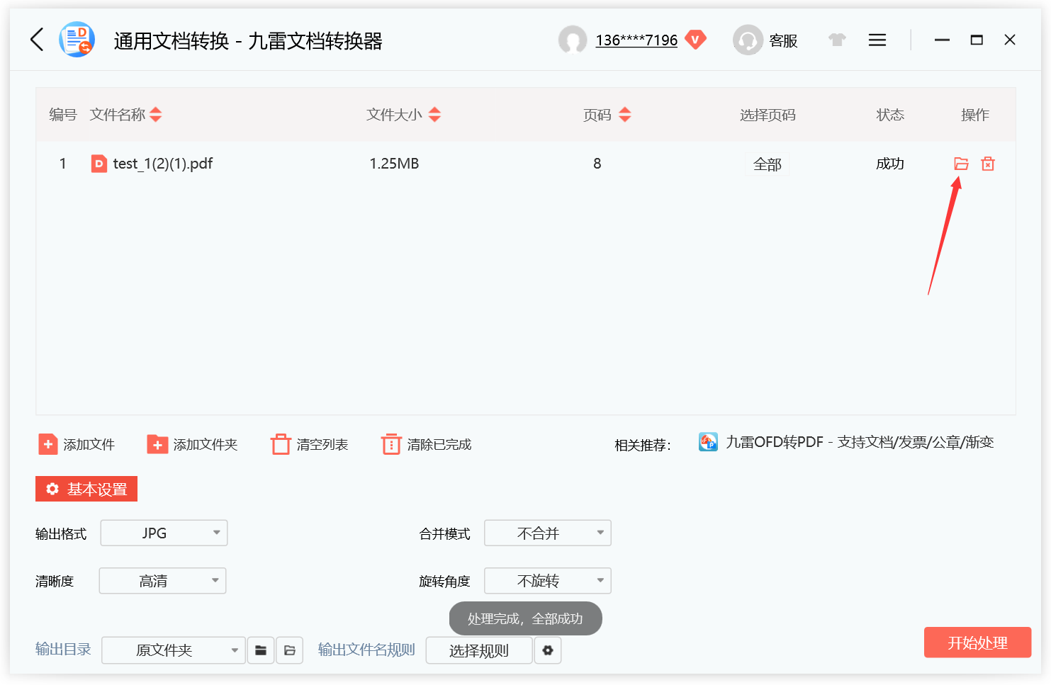 2、然后添加自己要转换的文件然后将输出格式设置为常用图片格式“jpg”开始处理。