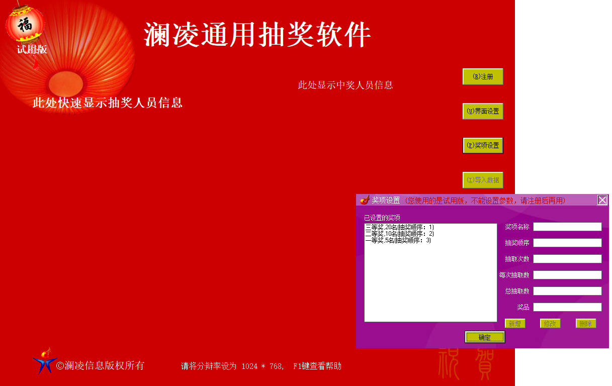 澜凌通用抽奖软件是一款专业可靠的在线抽奖工具,适用于各类活动场景,支持多种抽奖方式包括大转盘,幸运抽奖箱,随机数字等,操作简单便捷,界面清晰易懂,内置公平公正的随机算法确保结果真实有效,可自定义奖品设置和参与规则,满足企业活动,商场促销,线上互动等不同需求,支持实时数据统计和结果导出。