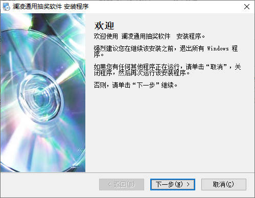 1、在本站下载澜凌通用抽奖软件,打开安装程序,点击下一步。
