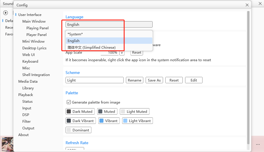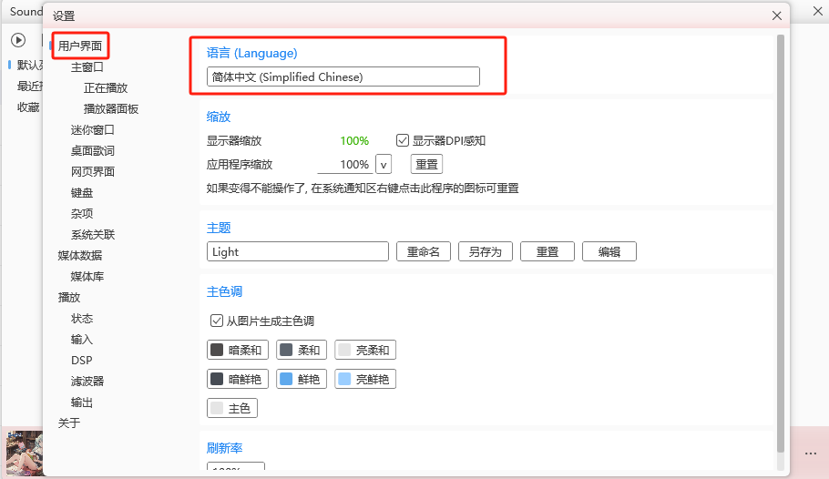 2、点击用户界面-语言,默认是简体中文。