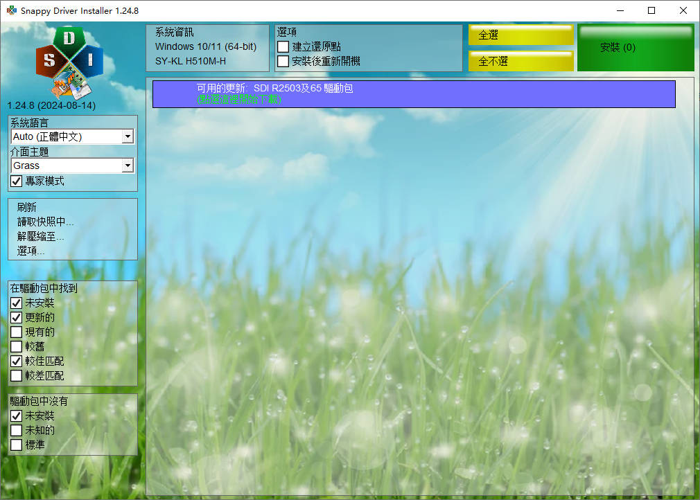 1、在本站下载并安装Snappy Driver Installer,打开软件。
