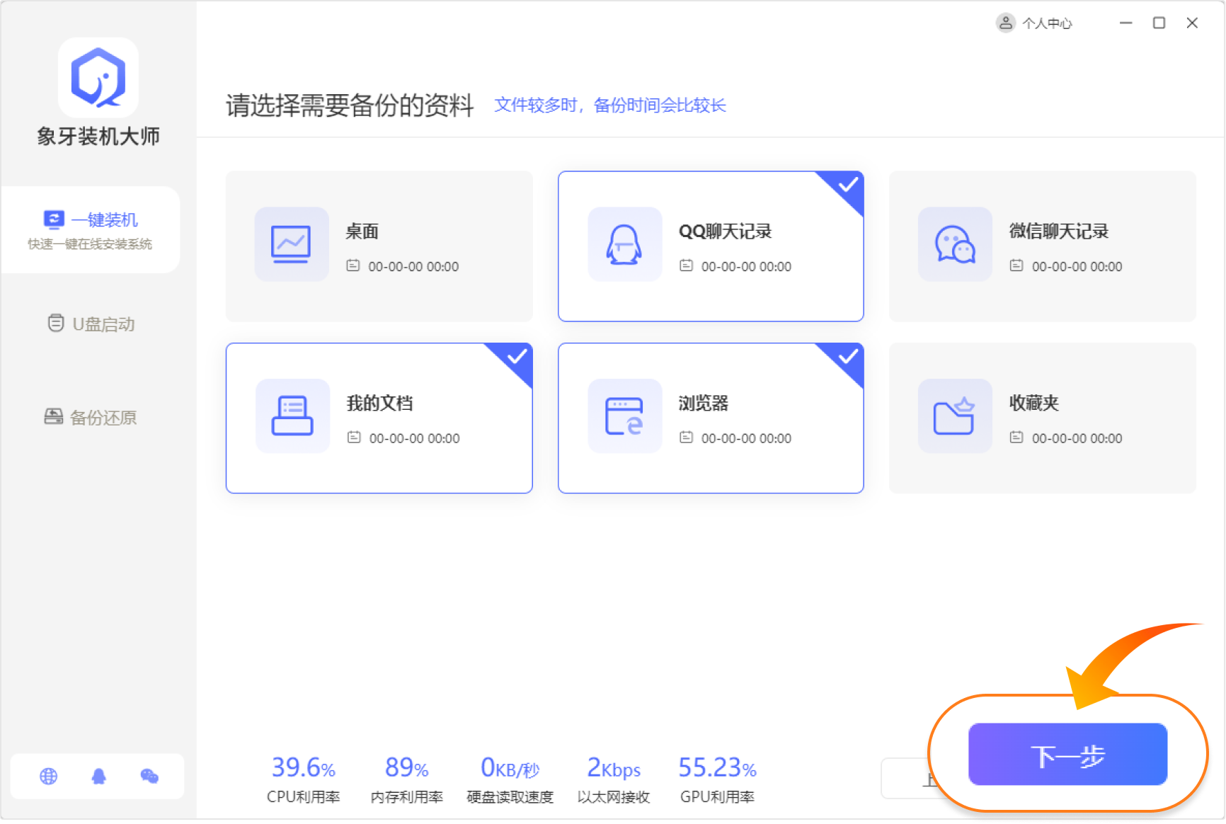 重装系统前自动备份桌面和C盘重要文件,安装完成后可选择恢复,避免数据丢失。