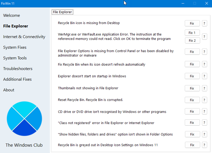 官网地址:https://www.thewindowsclub.com/fixwin-windows-pc-repair-software