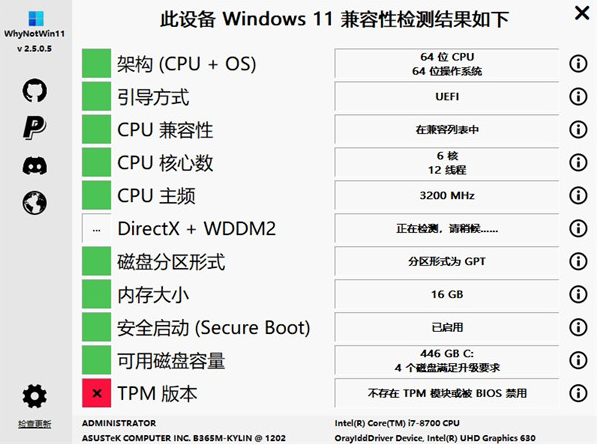 WhyNotWin11中文版是一款相当优质的系统检测专用工具,提供了非常优质的用户界面和充实的板块,可以帮助用户对自己的系统进行检查,确保自己的电脑可以安全的进行使用,让用户可以更加简单的下载游玩。