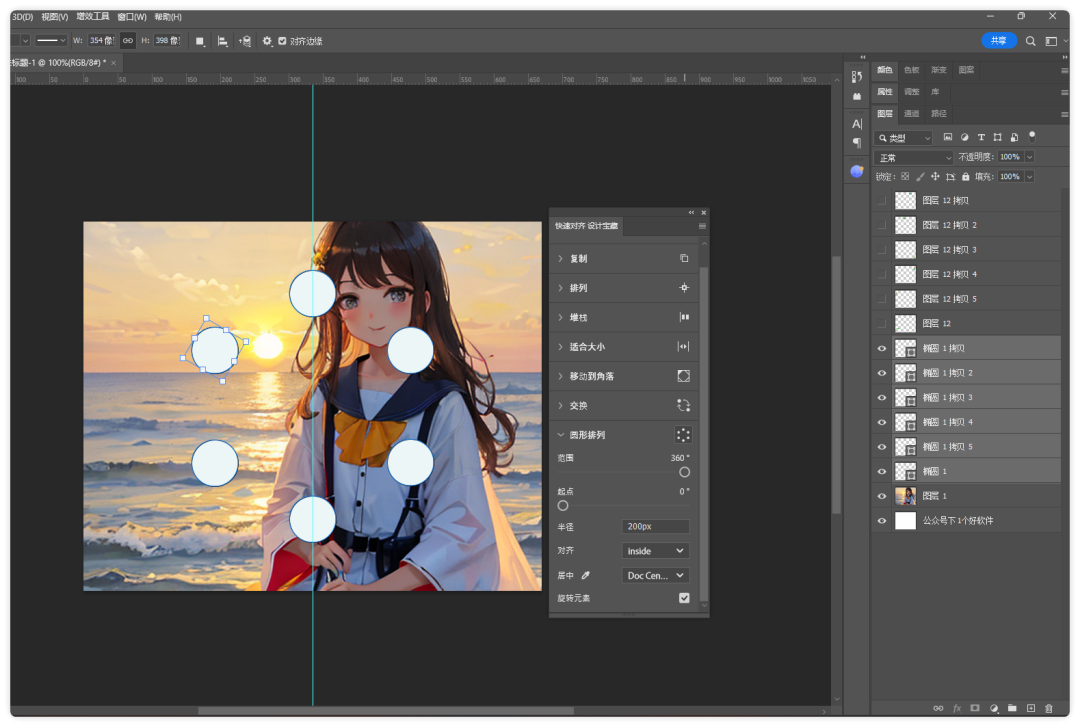 选择对齐的基准图层或参考点,突破PS默认以最上层图层为基准的限制。