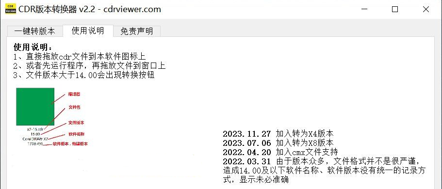 CDR版本转换器免费版以精准版本兼容性为核心特色,结合用户友好界面和,成为处理高版本CDR文件向低版本转换的理想工具,显著降低因版本不兼容导致的文件打开失败风险,提升工作效率和设计流畅性。