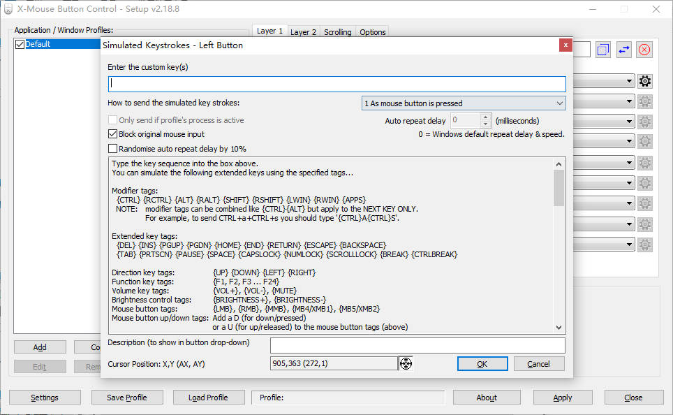 X mouse button control是一款功能强大的鼠标按键自定义工具,主要用于重新映射鼠标按键功能,支持修改左键、右键、中键以及侧键的操作行为。该软件允许用户为不同应用程序创建独立的配置文件,实现按键功能的个性化定制,例如将侧键设置为复制粘贴、音量调节或启动特定程序。