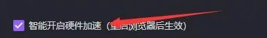 3、在“设置”窗口中,点击“高级设置”,找到系统后勾选智能开启硬件加速,随后重启生效。