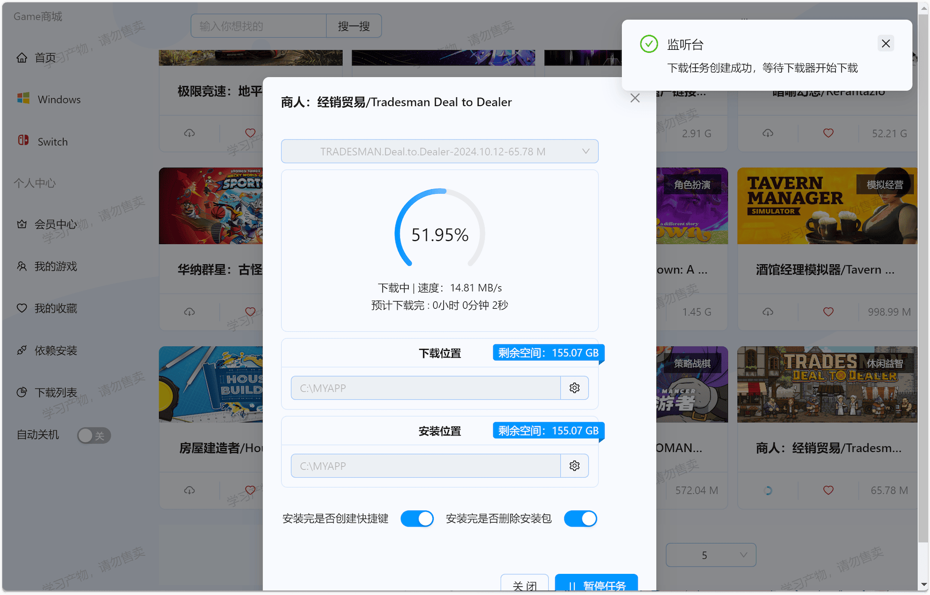 支持多线程高速下载技术,可同时下载多个游戏资源,自动检测网络状况并优化下载速度。