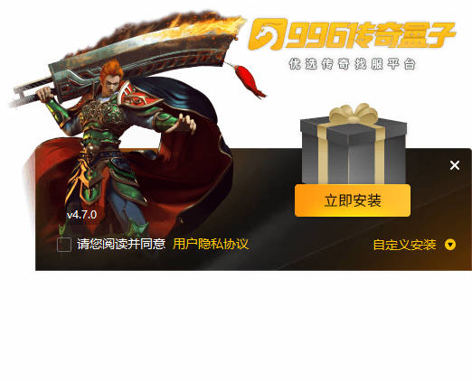1、在本站下载996传奇盒子游戏,打开安装程序,点击自定义安装。