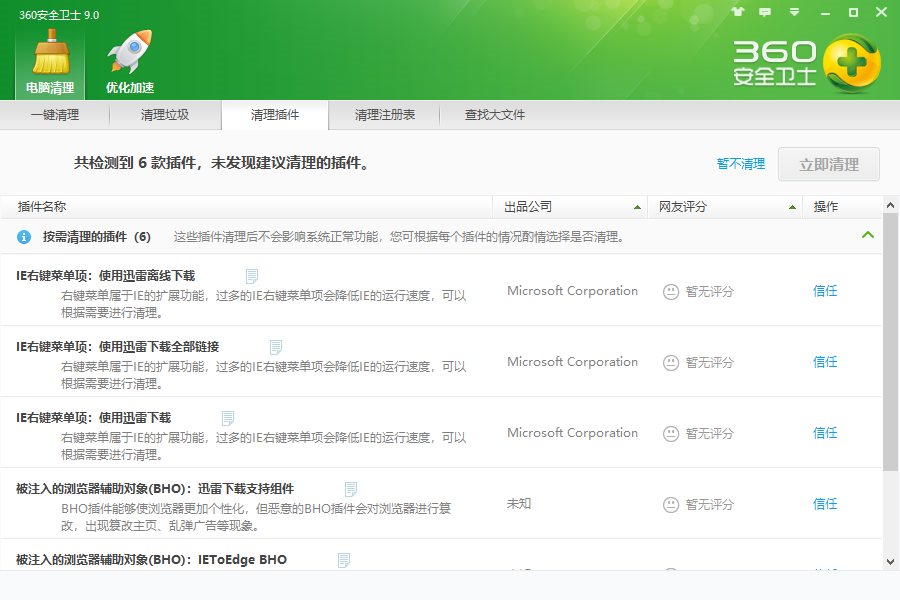 3、得到扫描结果后,可以针对性清理你不要的插件。