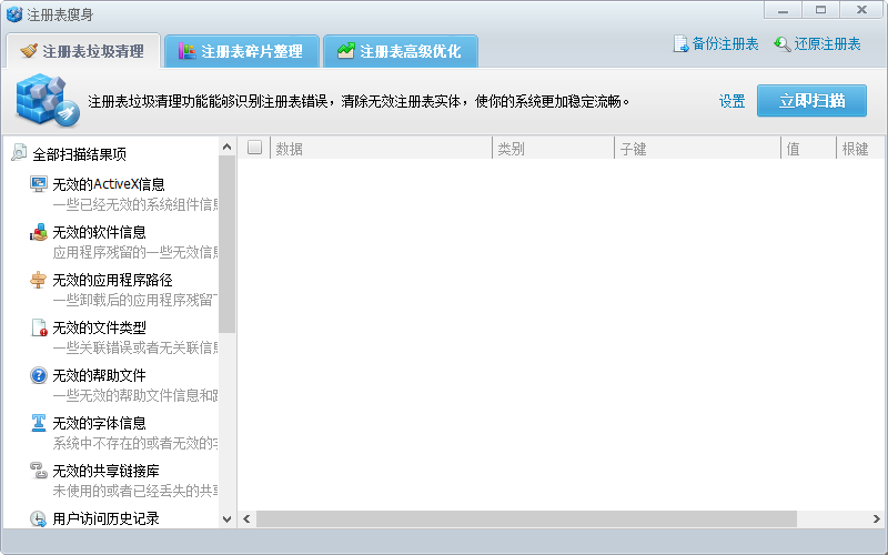 360注册表清理专注于注册表瘦身,清理无效文件类型记录可减少系统资源占用,释放出更多可用的磁盘空间,提升系统启动与运行速度,解决程序频繁出错问题,再配合其他360产品,可以让你的电脑越用越畅快。