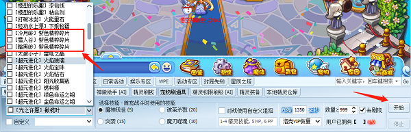 2、下方还可选择宠物属性等,一切准备完后点击开始。