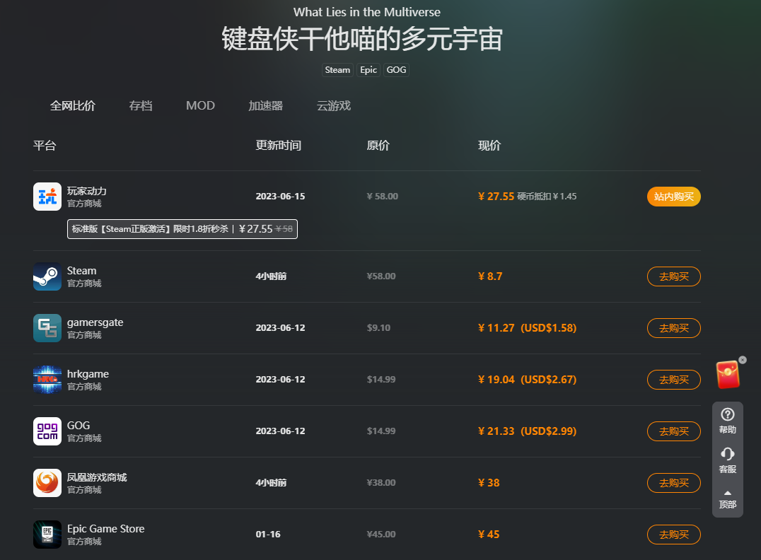 2、会显示各大游戏平台的售价,你就可以进行比价。