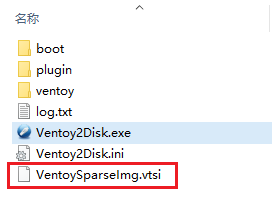 3、再点击安装,这时候不会写入U盘,而是生成一个VentoySparseImg.vtsi文件。