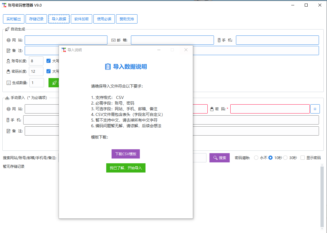可集中存储大量账号密码,支持分类管理,解决了用户账号密码过多难以记忆和管理的问题。