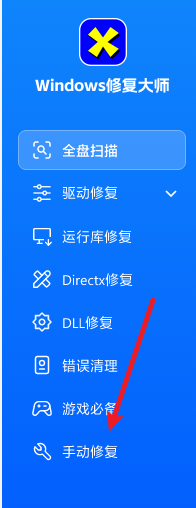 1、首先我们在软件的左侧的菜单栏中选择手动修复。