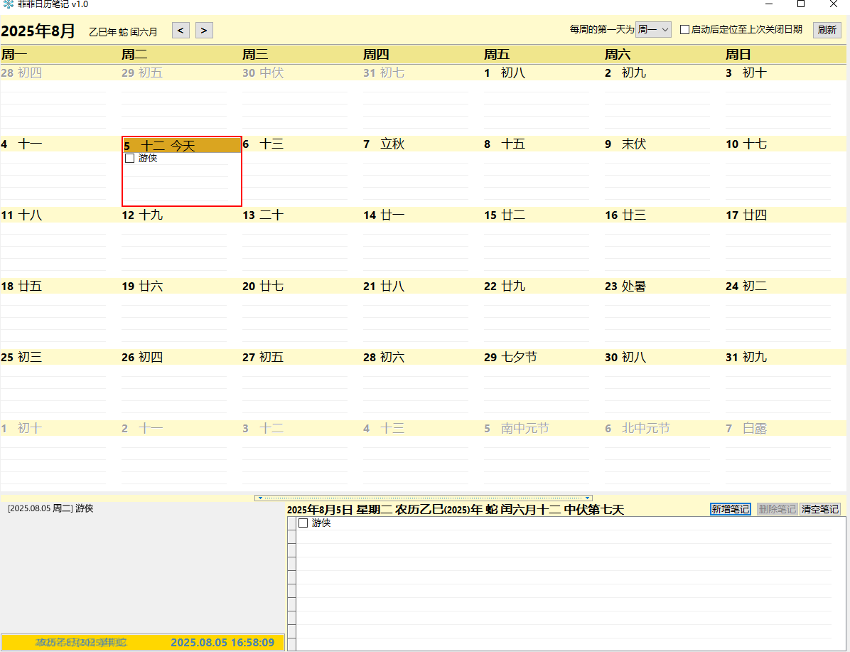 菲菲日历笔记是一款非常好用的笔记工具,这款软件当中将时间以及笔记完美的融合到了一起,用户可以在其中快速地进行重要内容的记录或者进行日记的书写,基本上能够借助其记录下很多非常重要的事情。