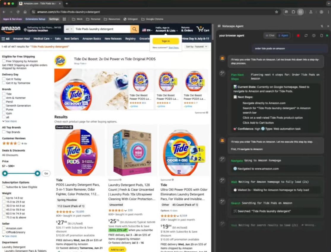 1、左边是电商网站,右边是对话框,你可以在对话框中发出指令。