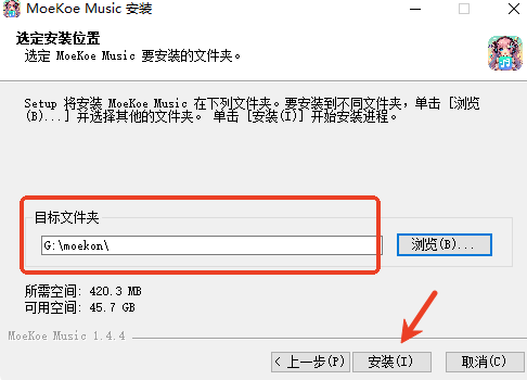 2、同意安装协议后进入安装位置更换界面;