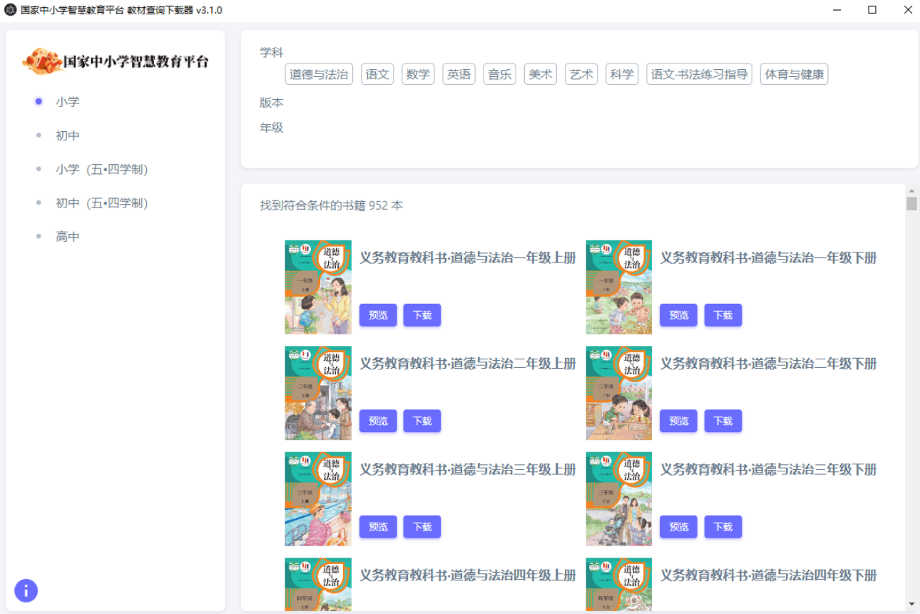 国家中小学智慧教育平台电子教材下载器是一款集合了各个年龄学段教科书的下载工具,用户能在软件中找到从小学再到高中再到特殊教育等等学段的课本。每个课本都提供在线预览,通过预览的方式来确定是否是自己要下载的课本。
