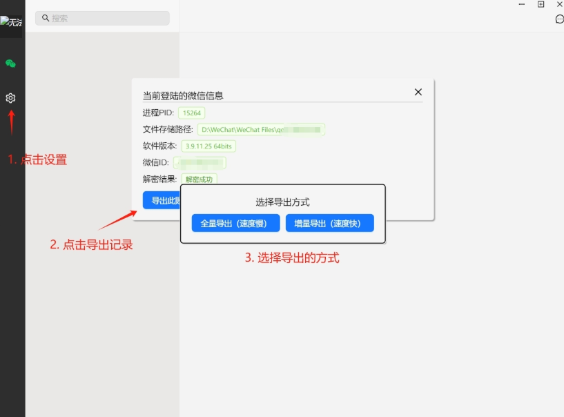 软件当中可以快速地对微信当中的各种数据进行导出,将需要的数据导出到本地。