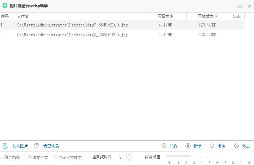 3、选择好要转换的格式、保存路径和压缩质量,即可开始转换。