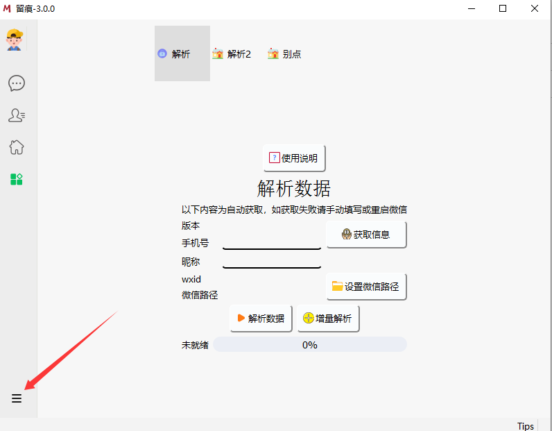 1、首先打开软件,点击右下角的三条横杠找到设置;
