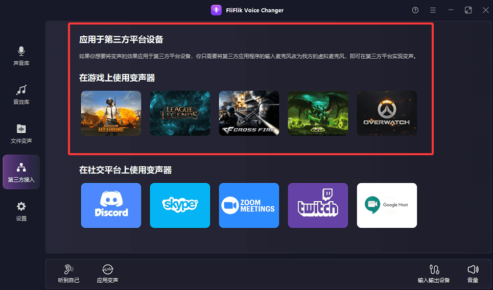 FliFlik Voice Changer变声器是一款专业的实时语音变声工具,软件内含上百种的声音素材和各种音效,满足用户的变声需求。此外还软件兼容各种平台的,保证用户在游戏或者远程会议的时候也能使用软件进行变声。