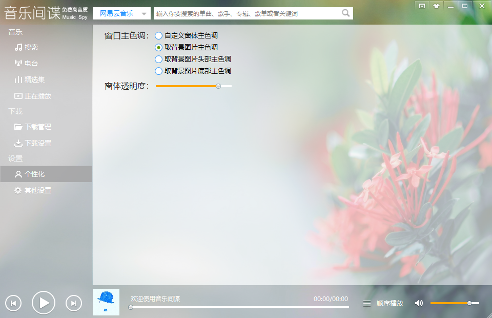 2、默认是取背景图片主色调,点击自定义窗体主色调,选用你喜欢的颜色。