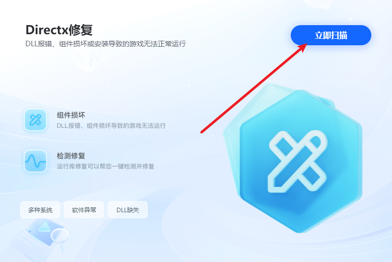 2、随后我们点击一键扫描,来寻找DirectX中的问题。