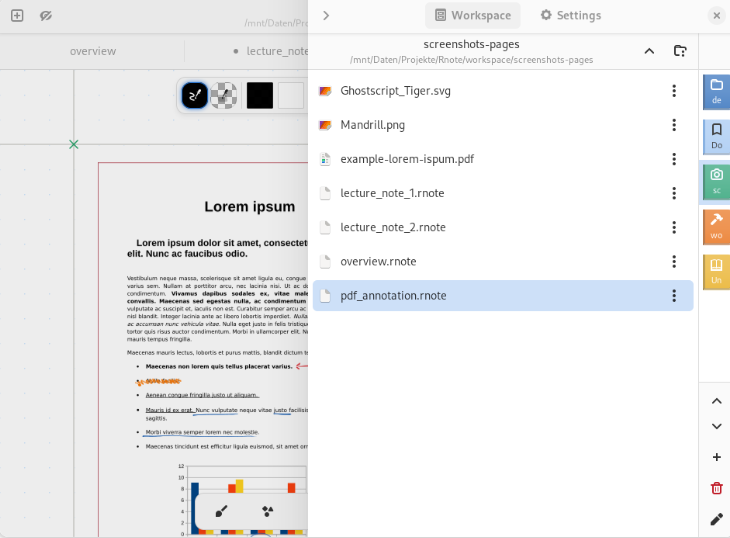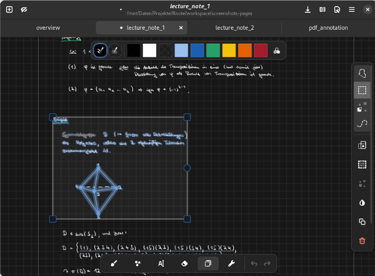 Rnote绘画软件内置形状工具,可创建多种几何图形,方便用户调整笔记布局和绘图元素,支持压感手写笔输入,能根据压力调整笔触粗细,还可设置多种笔触样式,带来接近纸张书写的感受,让大家获得逼真的书写/绘画体验。