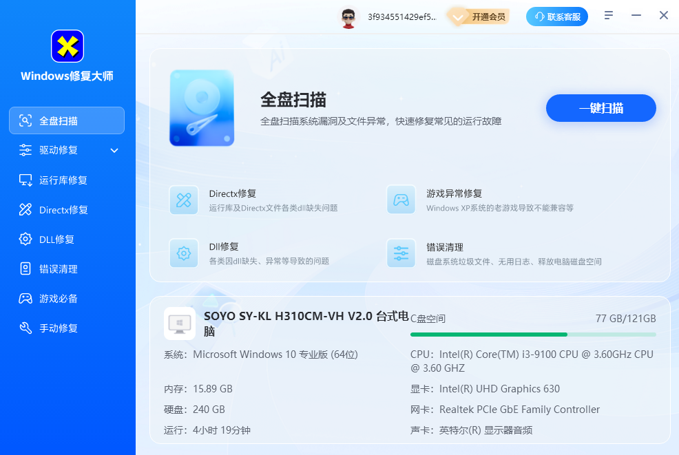 如果扫描出DLL文件缺失的话,这款软件能够帮助用户快速地进行各种数据的修复。