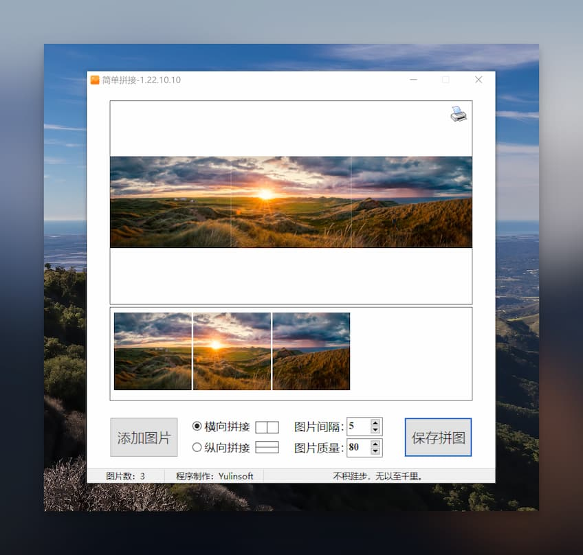 3、再设置图片间隔和图片质量,即可保存拼图。