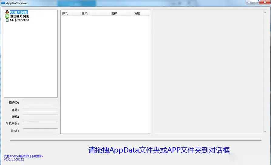 AppDataViewer是一款专门用来查看手机社交账号聊天记录的软件,软件能将当前账号的所有聊天记录都显示出来。用户能通过日期的方式来查找自己想用的记录,还可以通过聊天的账号来查询,总之提供多种查询方式,非常方便。
