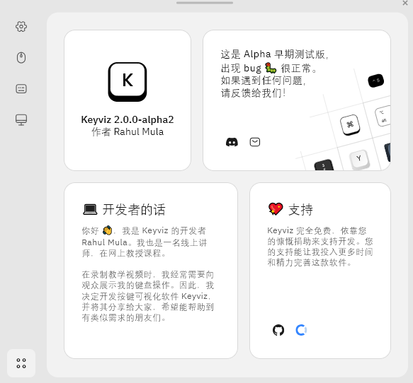 keyviz键盘按键可视化是一款简单的按键可视化工具,用户只要打开该工具就会在电脑上显示当前的键盘和鼠标操作了。如果觉得操作不明显的话还支持用户打开设置里的动画功能,为自己的操作添加上动画,吸引观众的注意力。