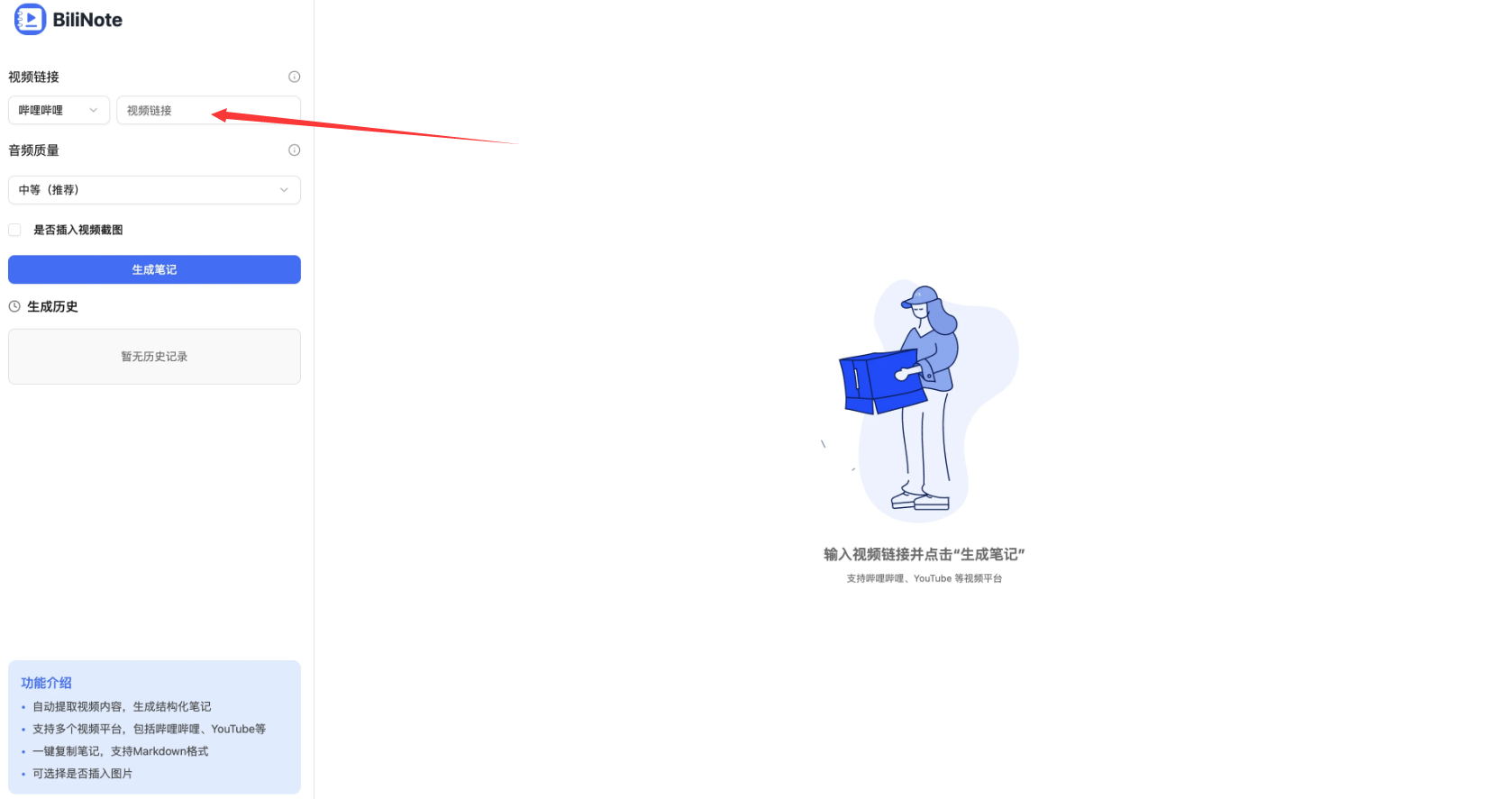 BiliNote视频笔记工具是一款深受用户喜欢的视频内容总结工具,这款软件能够将多个不同的网站当中的视频来进行内容总结,可以智能化的识别图片当中的内容并且实现成功的总结,为用户带来极大地便利性。