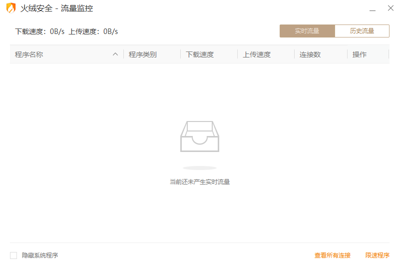 火绒流量监控独立版是一款专门用来检测应用程序流量使用情况的软件,软件会实时对程序进行监控,将使用情况都显示出来方便用户了解。用户能根据使用情况来单独对每一个软件进行流量限制,一键解放宽带。