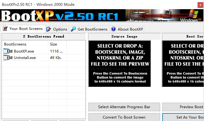 bootxp(xp登陆界面更换器)是一款专门用来更换XP系统登录界面的更换工具,软件能将登录界面换成用户喜欢的类型。在进行更换之前还能上传大量想更换的图片,通过预览的方式来挑出用户最喜欢的哪一个来使用。