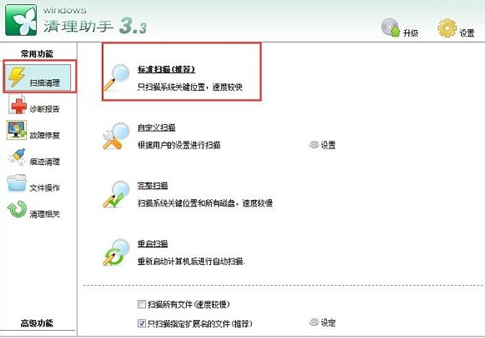 1、首先打开软件点击【扫描清理】-【标准扫描】;
