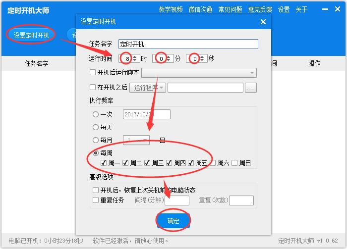 2、点击设置定时开机,选择时间,点击确定。