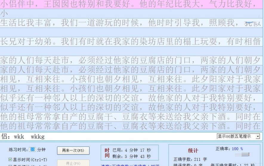 3、实时反馈与校对:实时显示正确率、速度及进度,错误输入会触发红色提示及音效。