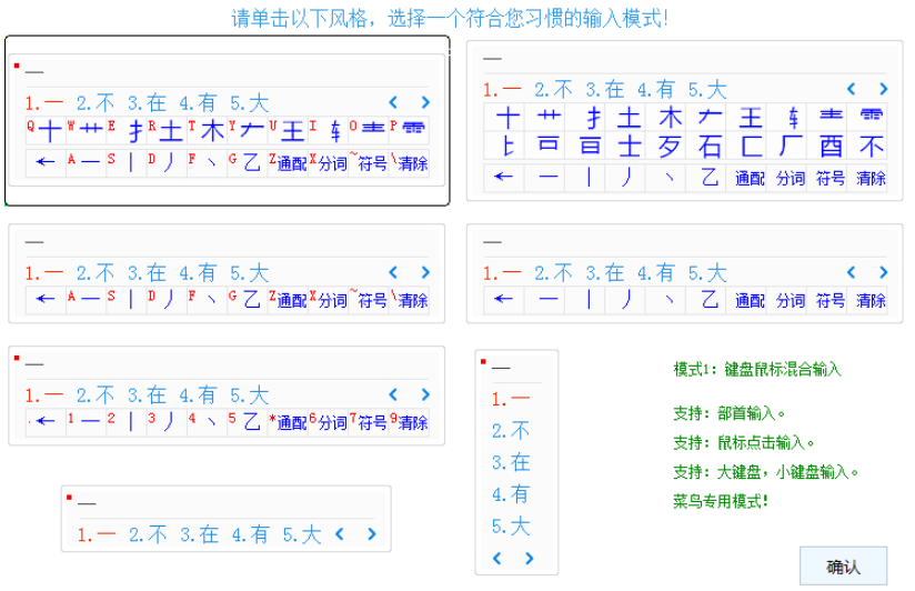 1、按汉字笔画输入横竖撇捺折,组合键连打输入复杂字,选字确认即可。