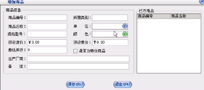 2、直接点击【增加】在里面填写新商品的信息;