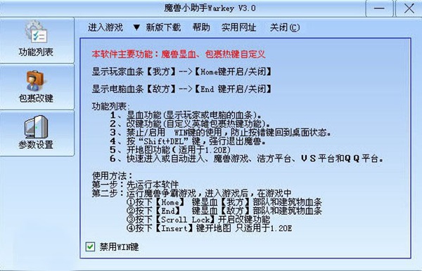 可禁止或启用 WIN 键,防止误按回桌面,保证游戏连贯性。